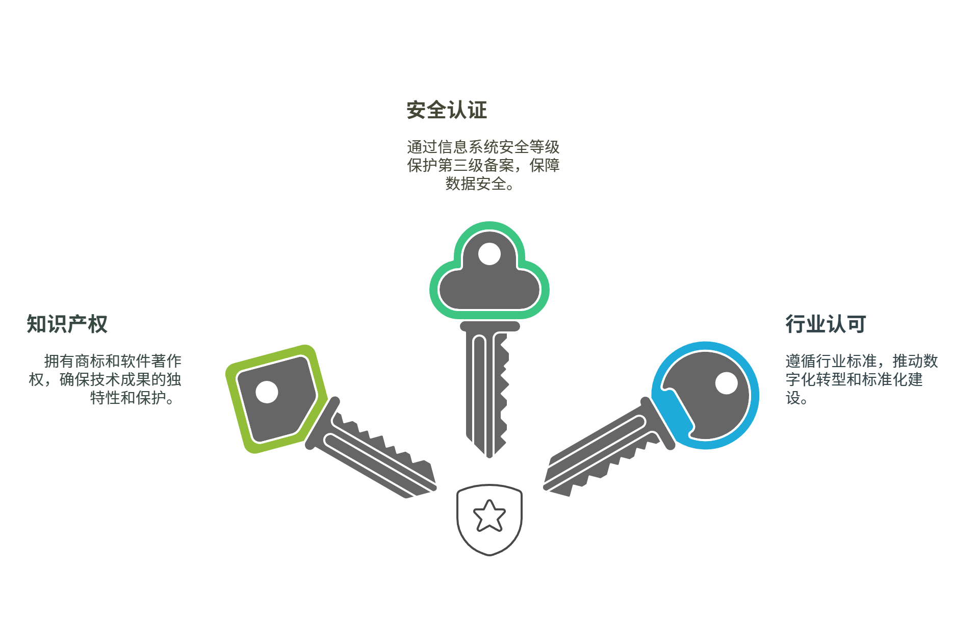 ● 安全认证:通过信息系统安全等级保护第三级备案,保障数据安全与系统稳定。