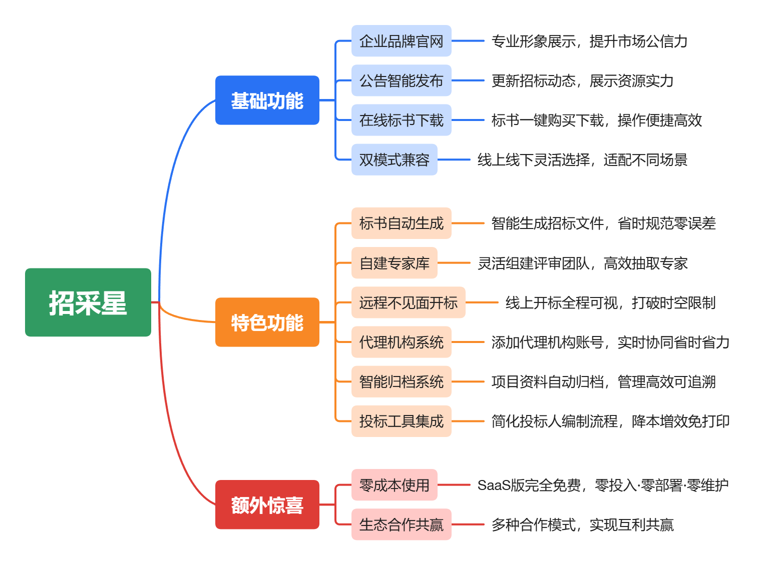 ● 知识产权:拥有“招采星®”商标(注册号:69691087)及多项发明专利、软件著作权,技术成果受国家知识产权保护。