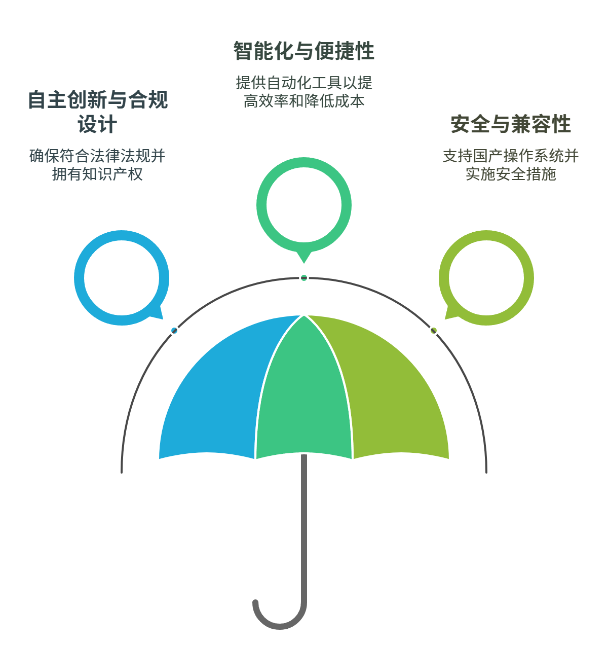● 安全与兼容性:支持国产操作系统(OpenCloud OS、OpenEuler)及数据库,通过三级等保认证,采用数据加密、权限控制、多租户隔离等技术,保障系统安全与数据隐私。