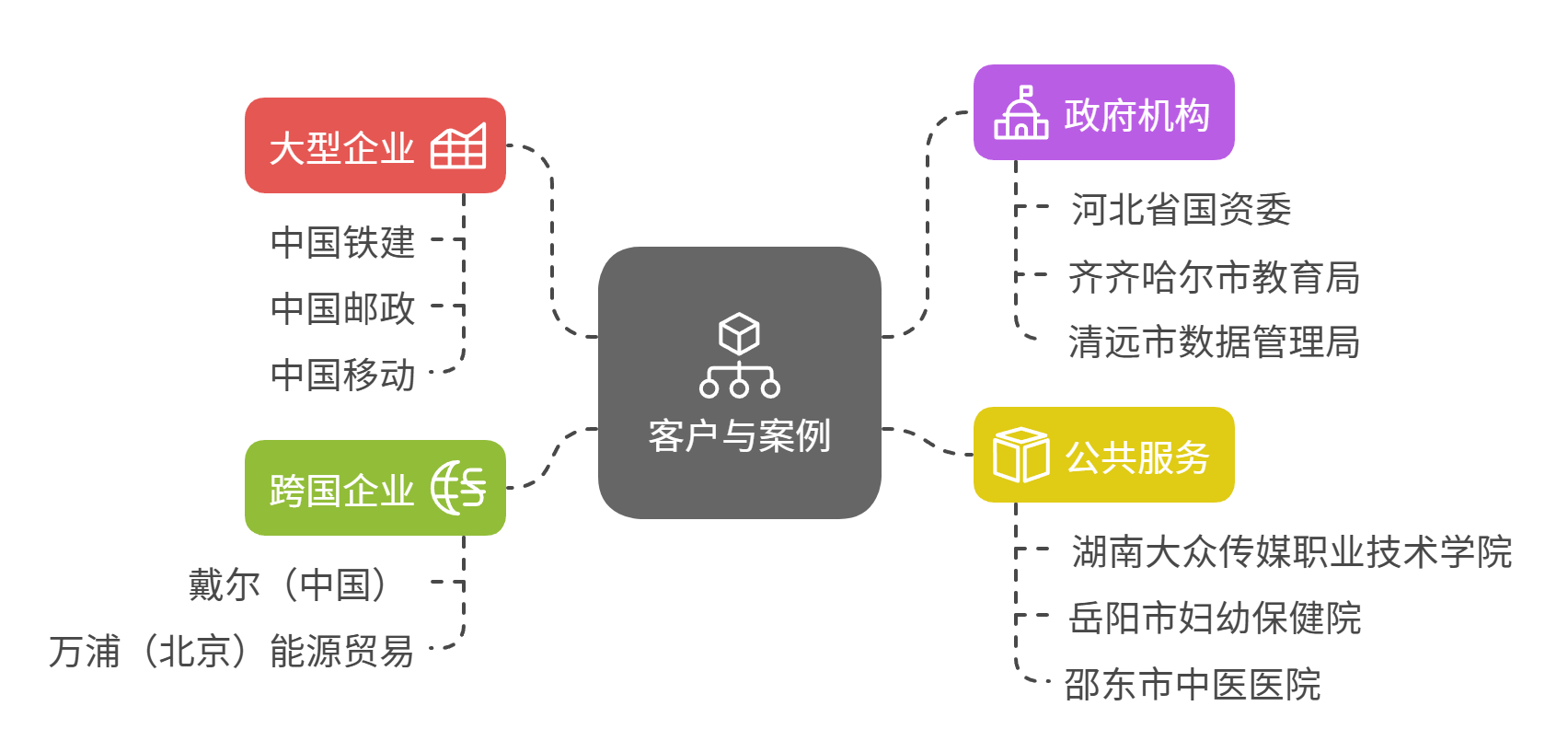 4.高端客户认可优势:服务中国铁建、中国邮政、戴尔(中国)等世界 500 强企业,以及河北省国资委、清远市政务服务数据管理局等政府机构,行业口碑卓著。